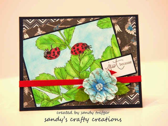 It's time for a new sketch challenge on Seems a Little Sketchy! We are sponsored for this challenge by Fitztown and my image is "Garden 29"--ladybugs on leaves. I colored the image with Copic markers.