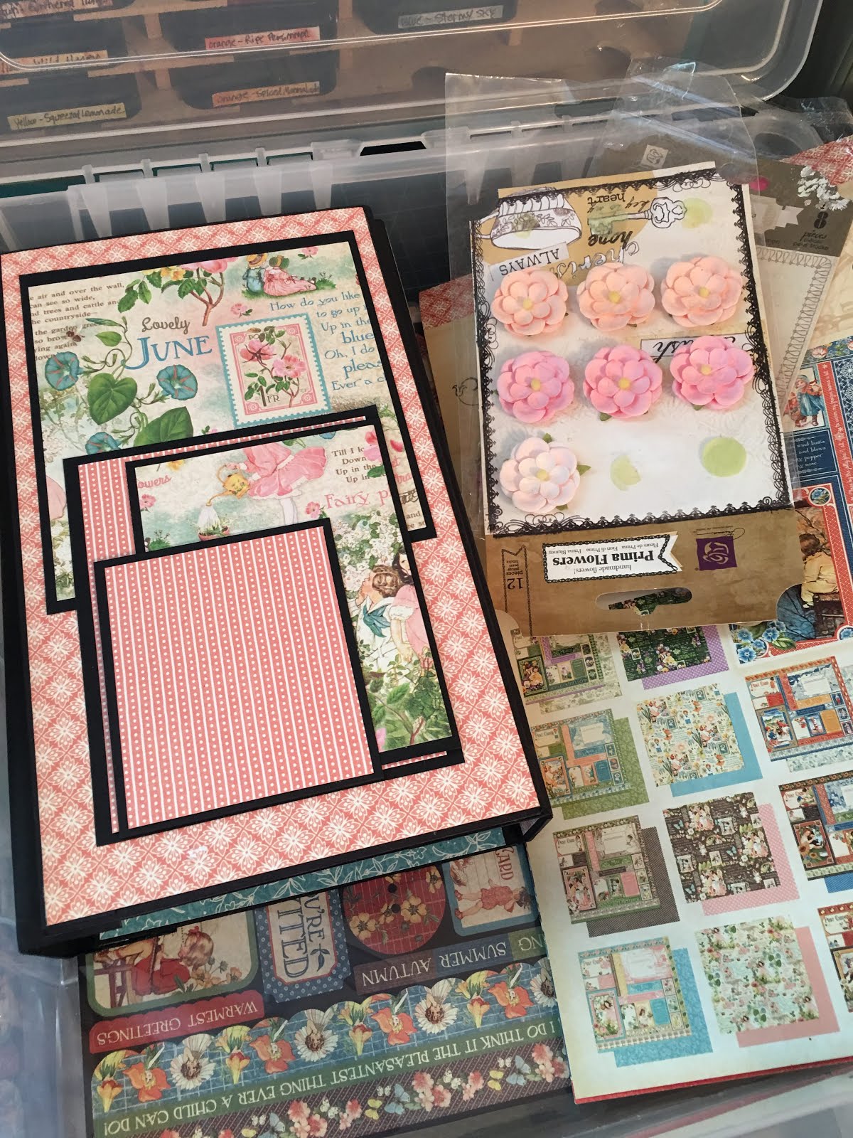 I had to really think about which unfinished project I wanted to choose for my next Finish it Friday. I do have several to pick from but in the end, I decided to go with this one. I think it's been in this plastic tote box for hmmmm....a year and a half maybe. Definitely time for me to get it done! The main idea for this journal book is from a YouTube video by Anne of Anne's Paper Creations. I made one and taught a class and then I started this one and only got it partially done. The collection that I decided to use on it is Graphic 45's "Children's Hour" which is a fun calendar type collection that's perfect for a journal type book. If you are wanting to make one similar to this and can no longer find this collection, you might want to check out the new Graphic 45 collection that will be available in September--"Seasons."
